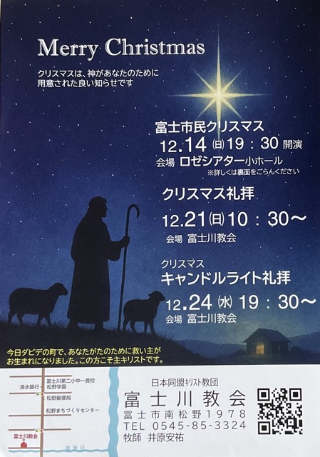 富士川教会は、富士市富士川地区(旧富士川町)の地域伝道を目的に、1993年に建てられた教会です。教会は、誰でも自由に入れます。